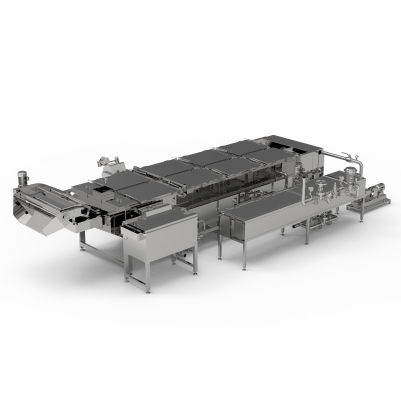 双螺旋⻧制机采⽤SUS 不锈钢制作,设备外观精美,结构强度好,输送稳定,物料运⾏安全。设备采⽤螺旋推进式⻧制。⻧制过程中设有⾃动恒温系统、⻧液循环系统、⻧液调配熬制系统,批量⽣产,外循环加热。该设备为使⽤⼚家节约了⼤量的⼈⼒物⼒,可实现⾃动化连线⽣产线,相对⻧⽔⽤量少,外循环加热,设备清洗⽅便。